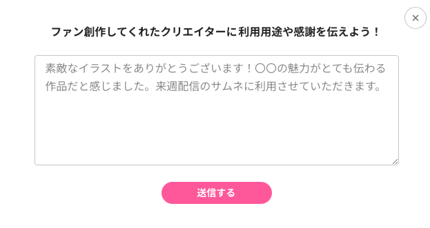 ただし、グッズ化など販売・収益化を伴う場合は、事前にクリエイターさんと条件を確認しましょう。