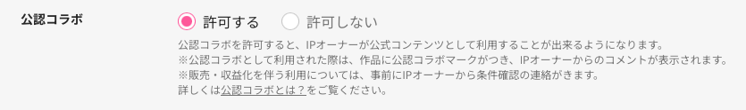 クリエイターは作品を投稿する際に、公認コラボを許可するか選択することができます。